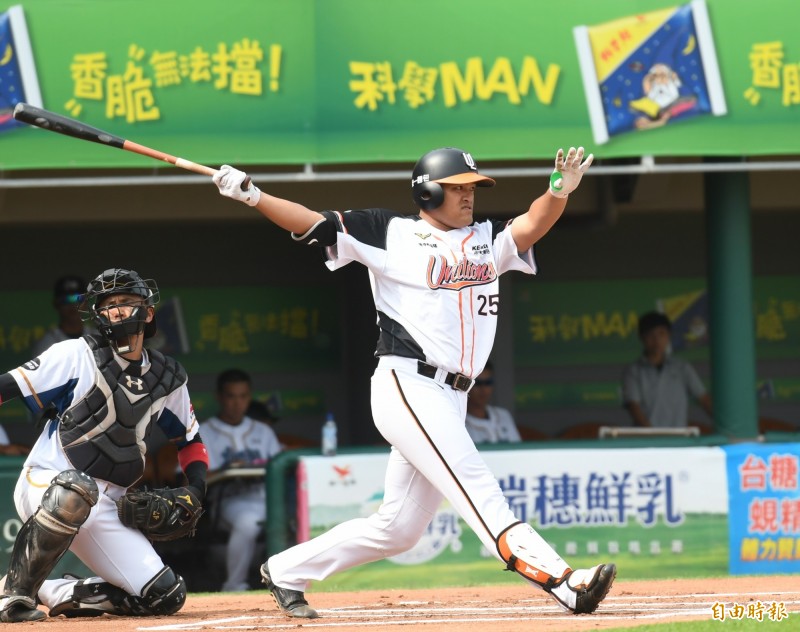 統一二軍鄧志偉擊出全壘打。(記者黃志源攝)