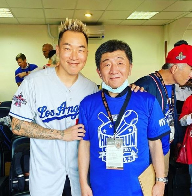 〔記者倪婉君/台南報導〕「不死鳥」郭泓志昨到台南球場和王建民擔任開球嘉賓,他除了在個人社群媒體曬出和建仔的經典合照,還秀出自己和衛福部長陳時中的照片,流露出少見的「迷弟」模樣。