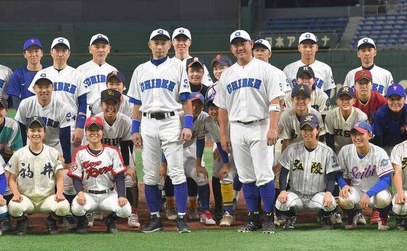 鈴木一朗與松坂大輔今天與女子高中棒球選拔隊進行對抗賽。(取自產經體育)