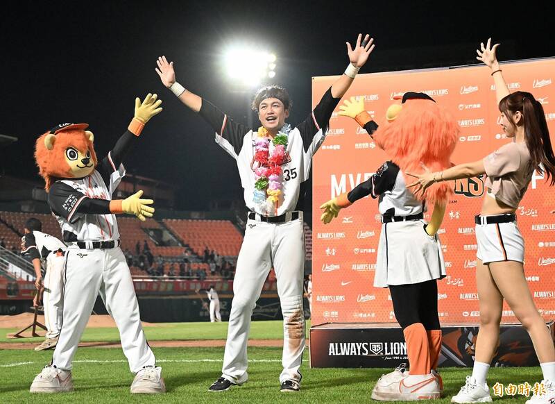 潘傑楷敲出逆轉三分打點安打,獲單場MVP。(記者李惠洲攝)