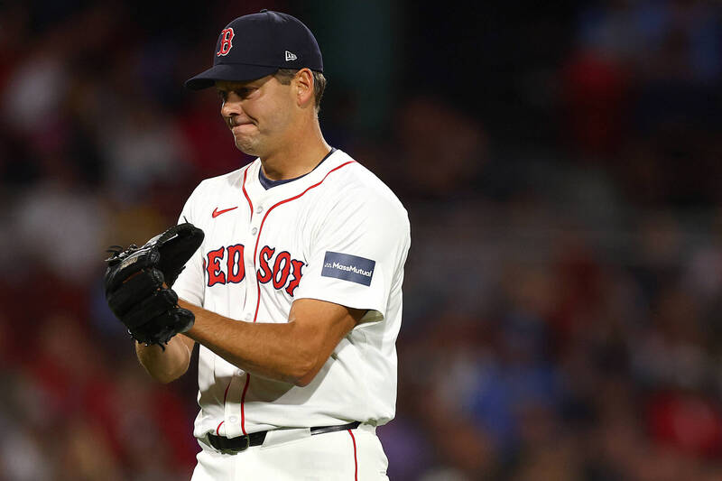 44歲資深左投希爾今天代表紅襪出賽,連續20個賽季在大聯盟登板,現役第一人。(法新社)