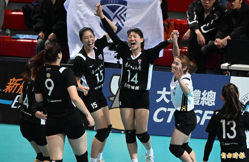 北市大女排逆轉台灣師大,收下隊史第7冠。(記者林正堃攝)