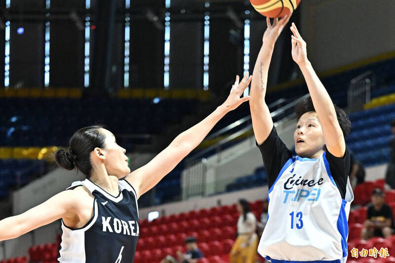 世大運培訓隊黃沁瑜三分得手。(記者陳志曲攝)