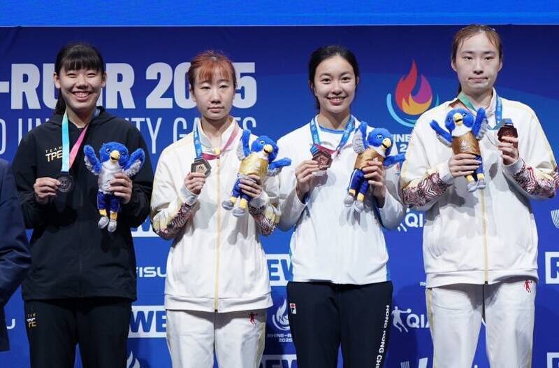 黃愉偼(左)勇奪世大運桌球女單銀牌。(大專體總提供)