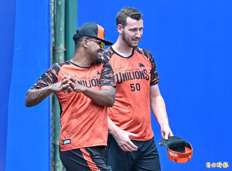 統一獅蒙德茲(左)與布雷克(右)。(記者陳志曲攝)
