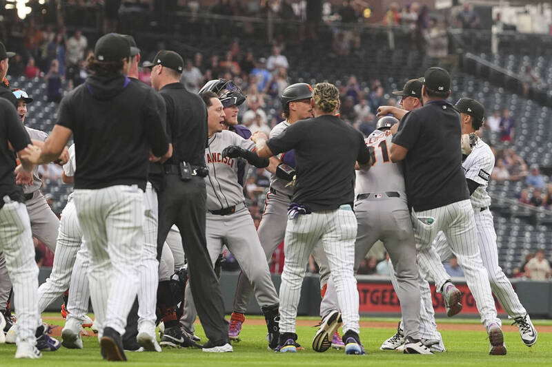 昨天的洛磯、巨人之戰首局上演衝突場面。(資料照,美聯社)
