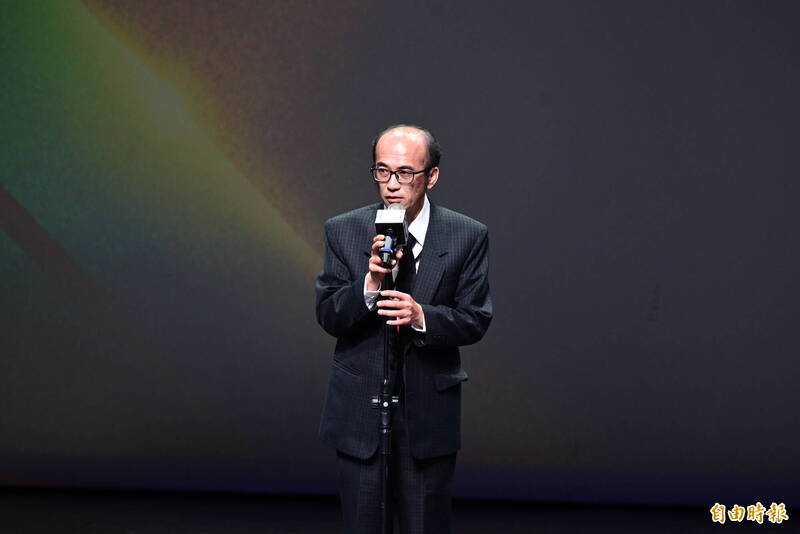 本屆終身成就獎,由蔡崇濱教練的兒子蔡瀚文先生代表領獎。(記者王藝菘攝)