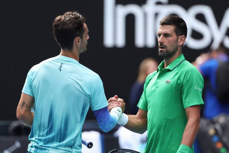 〔記者梁偉銘/綜合報導〕喬科維奇(Novak Djokovic)飽受右腳水泡傷勢所苦,4:6、3:6、3:1落後義大利第5種子穆塞蒂(Lorenzo Musetti)時,年輕對手卻因為受傷退賽,讓38歲塞爾維亞老將死裡逃生,戲劇性挺進2026年澳洲網球公開賽男單4強。