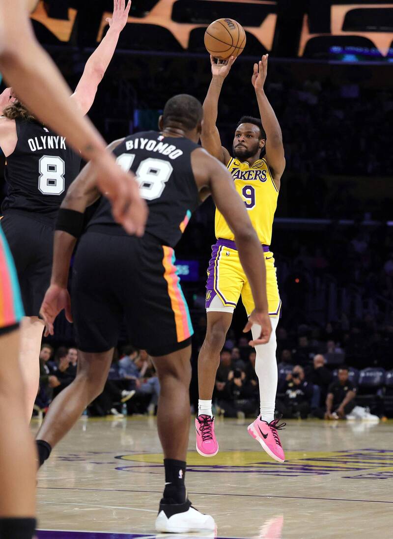 〔體育中心/綜合報導〕湖人今天輪休多名主力被馬刺打爆,「皇太子」布朗尼(Bronny James)獲得不少上場時間,繳出本季代表作,成為最大亮點。