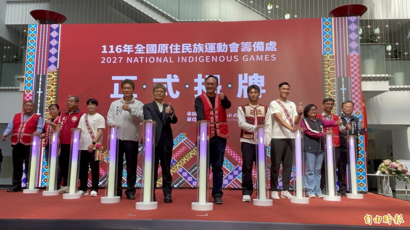 〔記者蘇孟娟/台中報導〕2年一度的全國原住民族運動會盛會,明年訂3月26至29日在台中登場,也是台中市8年來二度舉辦原民運,全國原住民族運動會籌備處今日在台中市府揭牌,台中市原住民奧運柔道國手楊勇緯及林真豪,與「跨欄王子」陳傑均到場見證,正式宣告賽會展開籌備,屆時全國16族、超過8000名原住民隊職員將齊聚台中切磋競技。