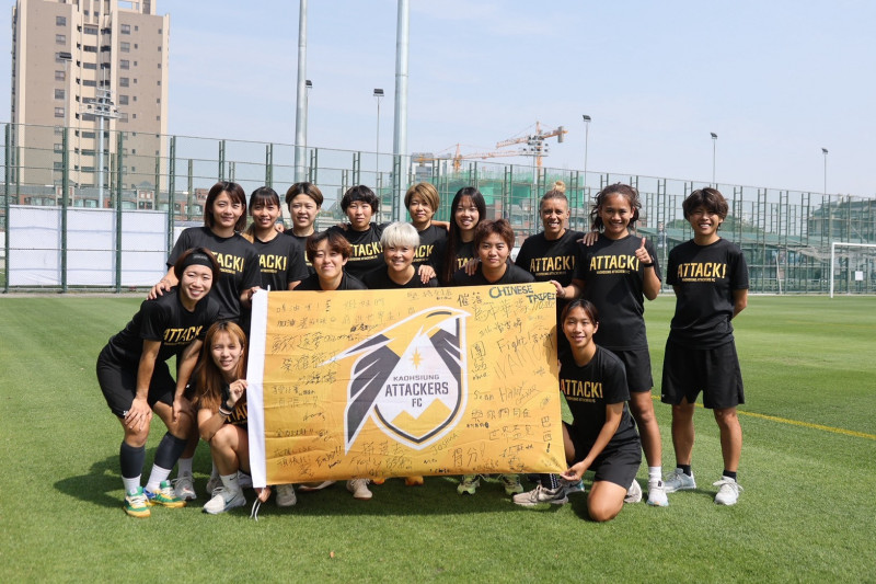 高雄Attackers FC女足全體隊員親自簽名,為第一線出征的台灣女足加油打氣(官方提供)