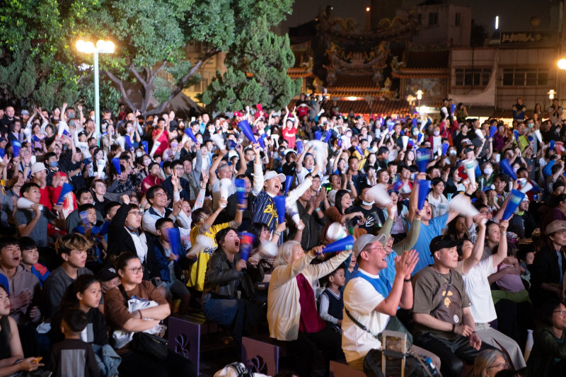 嘉義市政府以往棒球賽事期間,舉辦轉播活動,吸引球迷共同應援。(嘉義市政府提供)