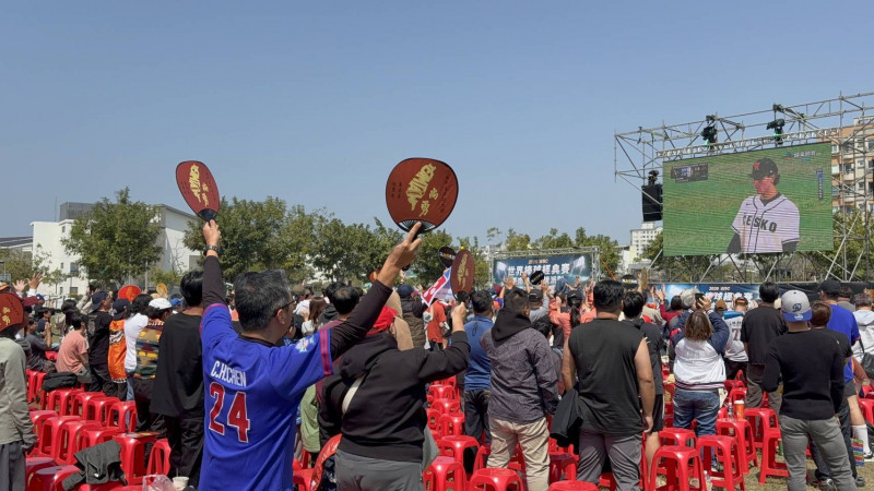WBC世界棒球經典賽轉播,民眾齊聚永華市政中心西側廣場應援。(台南市府提供)