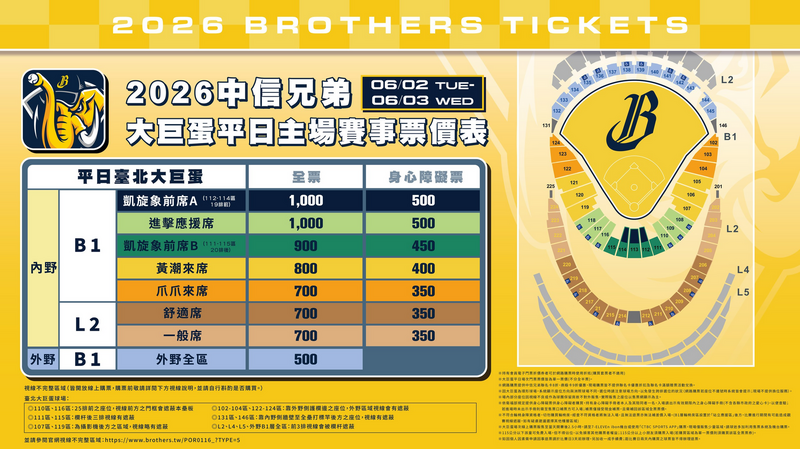 中信兄弟大巨蛋票價。(兄弟提供)
