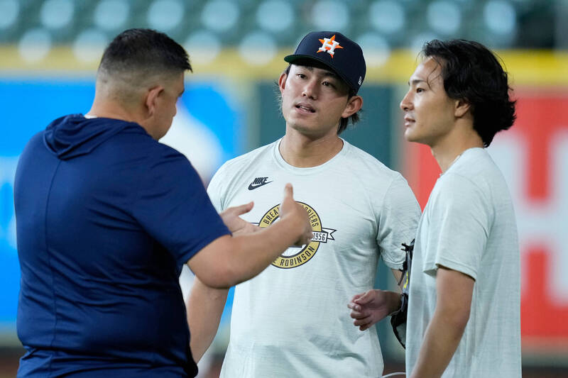 〔體育中心/綜合報導〕太空人日本火球男今井達也日前因右肩疲勞,進入15天傷兵名單,他昨天受訪透過翻譯表示,目前還不適應美國生活。《The Athletic》太空人隨隊記者羅姆(Chandler Rome)今天在美國棒球節目中《Foul Territory》指出,今井達也從春訓開始至今,已經使用過3位不同的通譯。