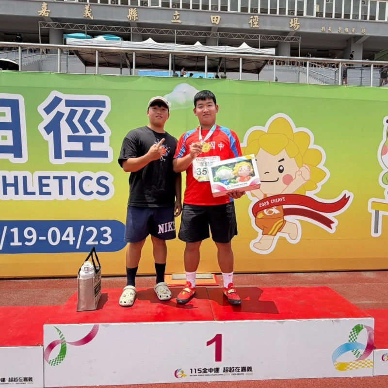 李健嘉(右)日前參加全中運鉛球項目決賽,一舉獲得金牌更是突破大會紀錄。(圖由校方提供)