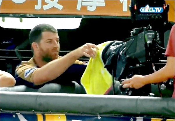 性犯罪、豎中指 桃猿場邊話題燒史博威前天不滿攝影機緊盯拍攝,蓋毛巾又比中指。