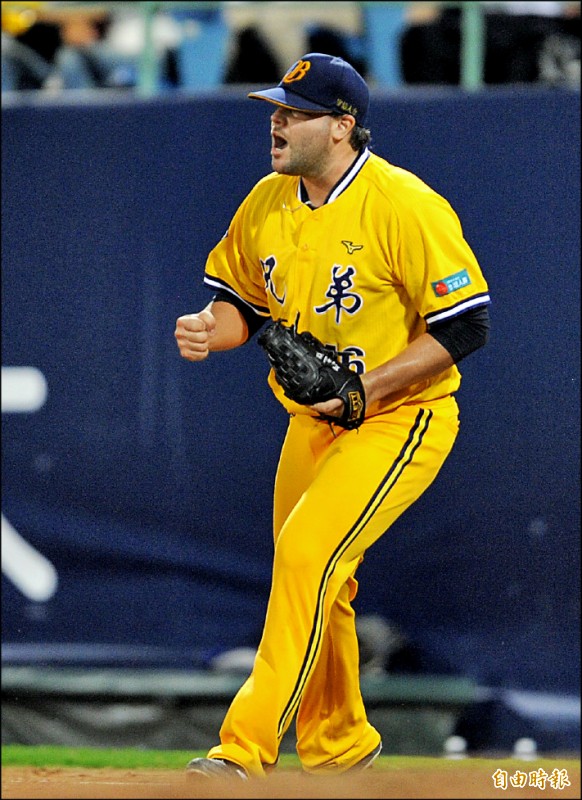 紐維拉6局下化解滿壘危機,激動不已。(記者林正堃攝)紐維拉6局下化解滿壘危機,激動不已。(記者林正堃攝)