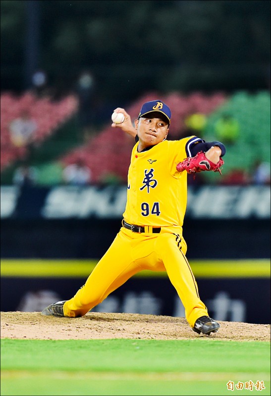 兄弟吳俊偉昨中繼1局無失分,把聯盟最多的中繼成功推進到17場。(記者廖耀東攝)第17場中繼成功