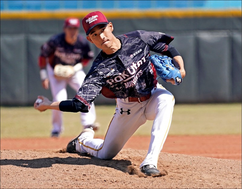 樂天桃猿下勾投手張喜凱昨先發4局無失分,只被擊出1支安打。(樂天桃猿提供)