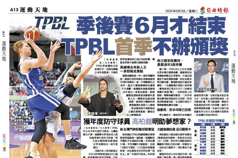 〔記者盧養宣/台北報導〕TPBL季後賽如火如荼進行中,近期也陸續公布年度獎項,不過受到季後賽結束已是6月底影響,聯盟首季將不會舉行頒獎典禮。