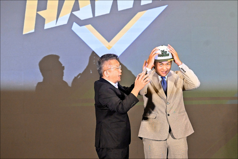 台鋼雄鷹與狀元韋宏亮(右)已達成合約共識。(資料照)