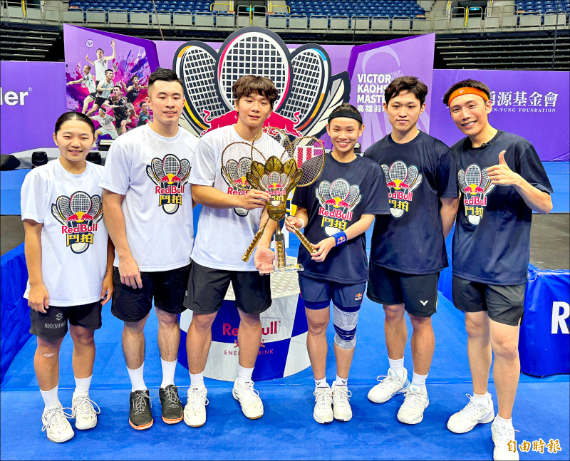 久未公開亮相的羽球天后戴資穎(右3),昨天在高雄巨蛋參加《Red Bull鬥拍》活動。(記者林岳甫攝)