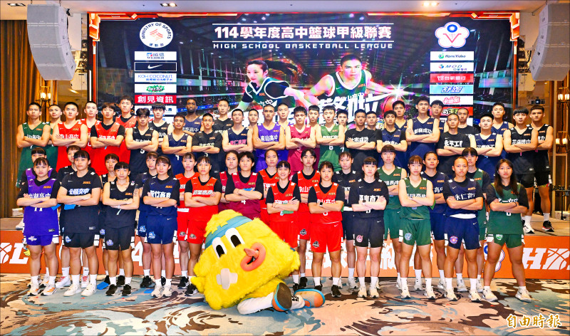 114學年度HBL高中籃球甲級聯賽預賽開打記者會,男16強、女12強共計28個隊伍的球員代表齊亮相。(記者廖振輝攝)