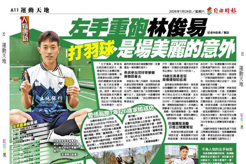林俊易接受本報專訪,談起小時候因表弟的關係,與羽球始於美麗的意外。