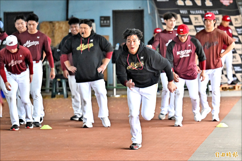 林立(中)帶著8年大約迎接新球季。(記者陳志曲攝)
