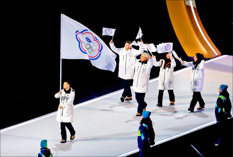 2026米蘭-科爾蒂納冬季奧運昨開幕,台灣代表團以字母「T」排序在第81順位進場,由男子花式滑冰選手李宇翔及女子雪車選手林欣蓉擔任掌旗官。