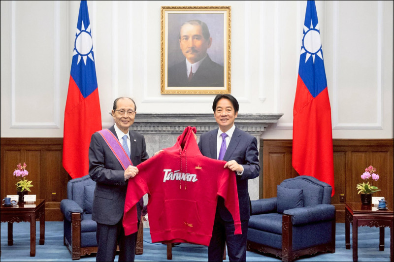 〔記者龔乃玠/台北報導〕賴清德總統昨頒授「世界的全壘打王」王貞治「一等景星勳章」,表彰其卓越棒球成就及推動台日棒球發展與交流的貢獻,並特別致贈棗紅色的「TEAM TAIWAN X 總統府聯名帽TEE」等伴手禮。