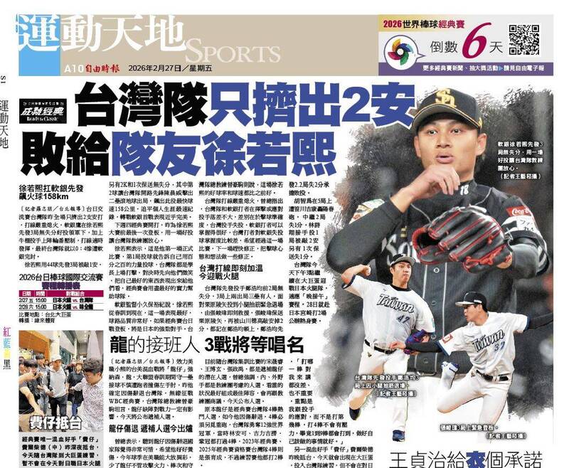 下週四經典賽開打,昨為徐若熙大賽前最後一次登板,用一場好投讓台灣隊教練團放心。