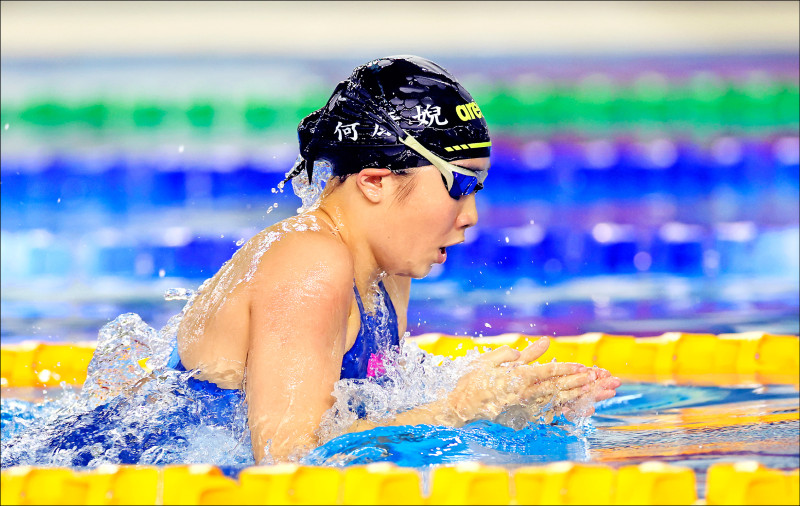 何康婗來自台南麻豆國中,4月27日才滿13歲,3月全國春季錦標賽200蛙游出2分31秒72,以0.07秒之差跨過亞運參賽門檻,也是台灣泳壇史上年紀最小的亞運國手。首度角逐全中運的她,50、200蛙又連破大會摘金,尤其200蛙2分31秒56再度達標亞運,更讓團隊士氣大振。昨100蛙決賽,何康婗1分10秒70觸壁,也超越林姵彣104年全中運締造的1分10秒89大會紀錄,3面蛙式金牌都締大會新猷,儘管挑戰1分09秒11亞運達標功虧一簣,潛力仍備受期待。